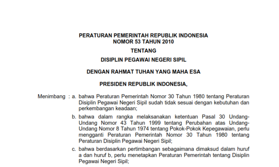 Peraturan Pemerintah Nomor 53 Tahun 2010 tentang Disiplin PNS